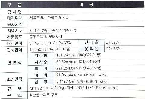 그렇다면 동일 아파트에서 재건축이 아닌 리모델링사업을 추진하면 어떨까. 조건은 수직 및 수평증축 아파트리모델링, 수직은 최대 3개 층까지 가능하며, 수평은 30% 이내에서 가능하다. <표1>에서 보듯이 서울 관악구 봉천동에 위치한 1531가구, 22개동 20층, 1개동 평균 5개 가구로 구성된 A아파트를 대상으로 계산해 보면, 20층(층당 5개 가구)에 3개 층 수직증축시 15가구가 증가하며(100→115가구), 22개동이면 330가구의 분양가구가 리모델링 사업시 발생한다. 이곳의 평균 1가구당 아파트 면적이 32평형(시세 12억 원)으로 가정할 때, 총 분양수익금은 3960억 원이 발생하며, 이 때 적용된 용적률은 15%이다.