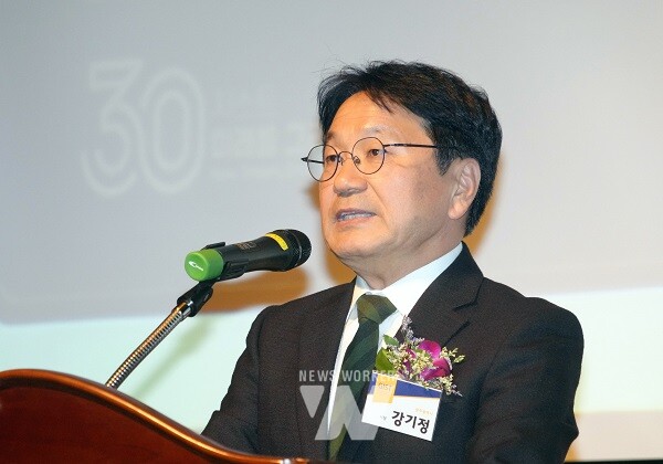 강기정 광주광역시장이 16일 오후 광산구 광주과학기술원(GIST) 오룡관에서 열린 지스트 설립 30주년 기념식 및 비전선포식에 참석해 축사를 하고 있다.