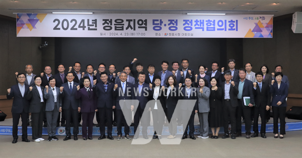 23일 오후 정읍시청에서 열린 이번 정책협의회는 윤준병 국회의원과 이학수 시장, 고경윤 의장을 비롯한 시의원, 임승식 도의원, 정읍시 간부 등이 참석해 25년도 국가예산 확보와 22대 총선 공약의 원활한 추진에 대해 협력을 다짐했다.