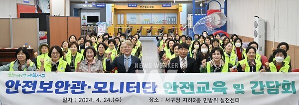 광주시 서구(구청장 김이강)는 24일 오전 서구청 지하2층 민방위실전센터에서 ‘대한민국 안전대전환 2024년 집중안전점검’과 관련해 안전모니터봉사단을 대상으로 교육 및 간담회를 실시했다.