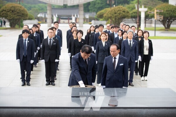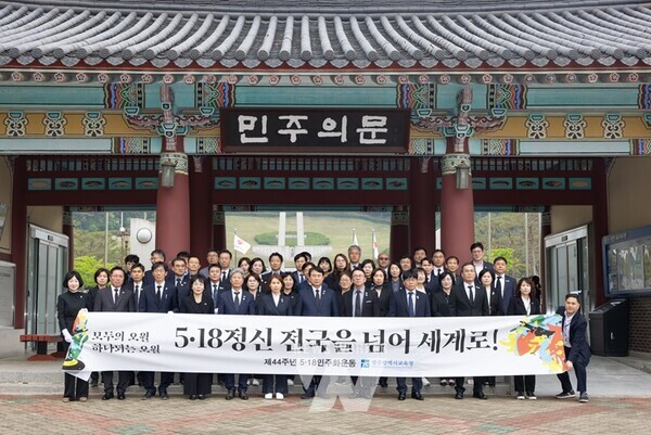 이정선 교육감이 7일 오전 9시 ‘5·18민주화운동 44주년’을 맞아 시교육청 및 산하기관 간부 등 50여 명과 함께 국립5·18민주묘지를 방문해 공식 참배했다.