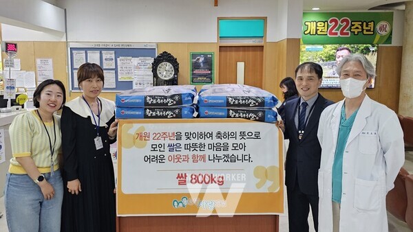 송정사랑병원(대표원장 정소환)이 개원 22주년을 맞아 10일 도산동 취약계층을 위해 백미 800kg(20kg/40포)를 후원했다. 백미는 광산구 도산동 취약계층 및 드림스타트 사업 대상자에게 배분될 예정이다.