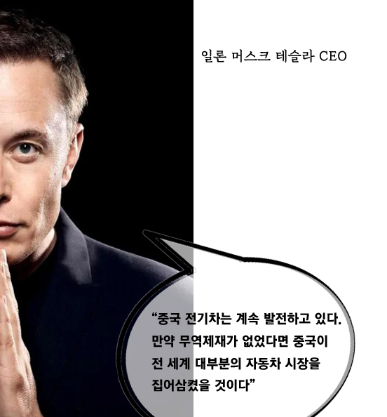 미국 대표 전기차업체 테슬라의 CEO 일론 머스크는 “중국 전기차는 계속 발전하고 있다. 만약 무역제재가 없었다면 중국이 전 세계 대부분의 자동차 시장을 집어삼켰을 것”이라고 평가했다. 머스크는 중국의 전기차 제조 기술력이 발전하면서 품질에 대한 논란도 점차 종식될 것으로 보고 있다.