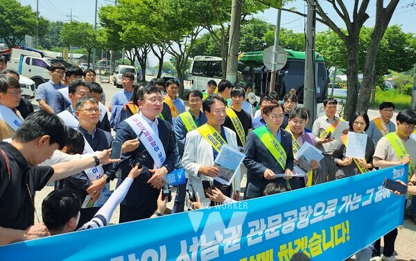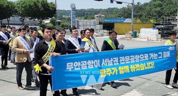 전라남도가 24일 무안읍 전통시장에서 ‘광주 민간·군 공항 통합 이전’ 관련 정확한 정보 제공을 위해 광주시와 함께 ‘현장 소통 홍보 캠페인’을 펼치고 있다.