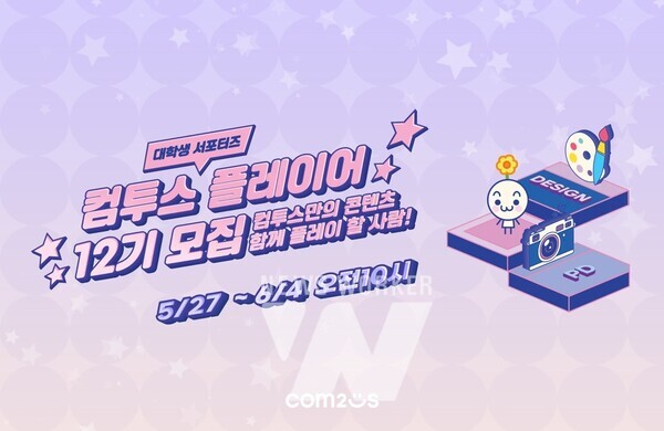 컴투스 그룹(의장 송병준)이 대학생 서포터즈 ‘컴투스 플레이어’ 12기를 모집을 시작했다고 27일 밝혔다. 이번 ‘컴투스 플레이어’ 12기의 모집은 PD(영상 촬영 및 편집)와 디자인(웹툰 등 디자인 콘텐츠 기획)으로 나뉘며, 각 분야 콘텐츠 제작에 필요한 소프트웨어 및 장비 활용 능력과 관련 역량 등을 종합 평가해 참여자를 선정한다.