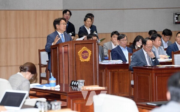 강기정 광주광역시장이 4일 오전 시의회 본회의장에서 열린 제325회 제1차 정례회 시정질문에 참석해 시정현안에 대한 답변을 하고 있다. /광주광역시 제공