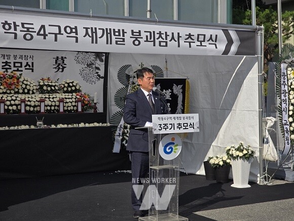 이전 기사보기 다음 기사보기 [포토] 이정선 교육감, 학동 4구역 재개발 붕괴 참사 추모식 참석 다른 공유 찾기 바로가기 복사하기 본문 글씨 줄이기 본문 글씨 키우기 이 기사를 공유합니다 페이스북(으)로 기사보내기 트위터(으)로 기사보내기 URL복사(으)로 기사보내기 닫기 스크롤 이동 상태바 홈 메트로 광주‧전남 [포토] 이정선 교육감, 학동 4구역 재개발 붕괴 참사 추모식 참석 기자명 김홍재 기자 입력 2024.06.09 18:40 다른 공유 찾기 인쇄하기 복사하기 본문 글씨 줄이기 본문 글씨 키우기 이정선 교육감이 9일 광주광역시 동구청에서 열린 학동 참사 추모식에 참석해 추모사를 낭독하며 희생자를 기렸다. 관련기사 광주시교육청, ‘2024 광주 학생 글로벌 리더 세계 한 바퀴 프로그램’ 발대식 개최 광주시교육청, 첨단산업-신산업 분야 중학생 직업체험 프로그램 설명회 개최 광주시교육청, ‘2024년도 제2회 초‧중‧고졸 검정고시’ 공고 광주시교육청, 2024년 여름철 교육시설 안전점검 실시 광주시교육청, 정신건강전문가 학교방문사업 추진 강기정 광주시장, 학동참사 3주기 추모식 참석 김홍재 기자 2580@newsworker.co.kr 기자의 다른기사 저작권자 © 뉴스워커 무단전재 및 재배포 금지 최신기사 삼성물산·엘리엇 사태 재발 막는다? 민주당 ‘자사주 방패’ 폐지 드라이브.. 어떻게 보는가 LS그룹, 2026년 임원 인사 단행…‘안정·미래·성과주의’ 3축 강화 삼성증권, 2026년 정기 임원 인사…부사장 1명·상무 4명 승진 정부 규제 3연타에 시장 멈췄다…‘부동산 쇼크’ 전문가 진단 나선다 레몬헬스케어, 진짜 SaaS인가? 기술특례 상장 앞두고 밸류 논쟁 본격화 습기 대신 독기 품은 바람?…체감온도 끌어내리는 차가운 공기 개의 댓글 회원로그인 작성자 비밀번호 댓글 내용입력 댓글 정렬 최신순 추천순 답글순 BEST댓글 BEST 댓글 답글과 추천수를 합산하여 자동으로 노출됩니다. 닫기 더보기 댓글삭제 삭제한 댓글은 다시 복구할 수 없습니다. 그래도 삭제하시겠습니까? 비밀번호 닫기 댓글수정 댓글 수정은 작성 후 1분내에만 가능합니다. 본문 / 400 비밀번호 닫기 내 댓글 모음 닫기