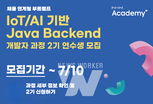 엔에이치엔(대표 정우진, 이하 NHN)은 소프트웨어 인재 양성 전문교육기관 NHN아카데미가 경남 캠퍼스에서 "IoT/AI 기반 Java Backend(자바 백엔드) 개발자 과정” 2기에 참여할 연수생을 모집한다고 21일 밝혔다. NHN아카데미는 이번 교육 과정 2기에 참여할 연수생 60명을 오는 7월 10일까지 모집해 9월부터 10개월 동안 경남 캠퍼스에서 교육을 진행하게 된다.