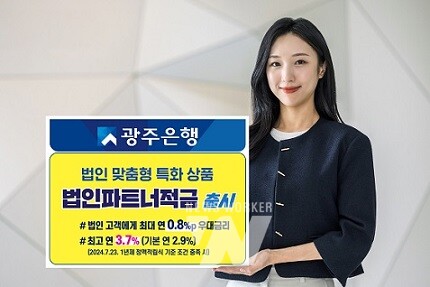 광주은행(은행장 고병일)은 거래 실적에 따라 우대금리를 제공하는 법인 전용 적금 상품인 ‘법인파트너적금’을 출시했다고 26일 밝혔다.