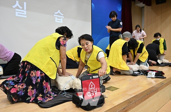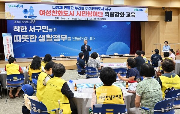 광주시 서구(구청장 김이강)는 12일 오전 서구청 2층 들불홀에서 여성친화도시 시민참여단 30여 명을 대상으로 자동심장충격기 사용법 및 심폐소생술 등 역량강화 교육을 실시했다.