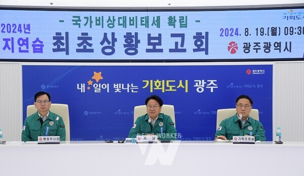 이전 기사보기 다음 기사보기 강기정 광주광역시장, '2024년 을지연습 최초상황 보고회' 참석 다른 공유 찾기 바로가기 복사하기 본문 글씨 줄이기 본문 글씨 키우기 이 기사를 공유합니다 페이스북(으)로 기사보내기 트위터(으)로 기사보내기 URL복사(으)로 기사보내기 닫기 스크롤 이동 상태바 홈 메트로 광주‧전남 강기정 광주광역시장, '2024년 을지연습 최초상황 보고회' 참석 기자명 조준성 기자 입력 2024.08.19 17:30 다른 공유 찾기 인쇄하기 복사하기 본문 글씨 줄이기 본문 글씨 키우기 강기정 광주광역시장이 19일 오전 시청 충무시설에서 열린 2024년 을지연습 최초상황보고회에 참석해 인사말을 하고 있다./광주광역시 제공 관련기사 광주시, “일회용 컵 대신 다회용 컵 사용하세요” 광주시, '외국인 유학생 장기자랑대회' 연다 광주시, ‘도시철도 2호선 2단계’ 주민설명회 개최 광주시, 9월2⁓3일 국회서 ‘광주의 날’ 연다 광주시, “22일 오후 2시 사이렌 울리면 대피하세요” 조준성 기자 2580@newsworker.co.kr 기자의 다른기사 저작권자 © 뉴스워커 무단전재 및 재배포 금지 최신기사 삼성물산·엘리엇 사태 재발 막는다? 민주당 ‘자사주 방패’ 폐지 드라이브.. 어떻게 보는가 LS그룹, 2026년 임원 인사 단행…‘안정·미래·성과주의’ 3축 강화 삼성증권, 2026년 정기 임원 인사…부사장 1명·상무 4명 승진 정부 규제 3연타에 시장 멈췄다…‘부동산 쇼크’ 전문가 진단 나선다 레몬헬스케어, 진짜 SaaS인가? 기술특례 상장 앞두고 밸류 논쟁 본격화 습기 대신 독기 품은 바람?…체감온도 끌어내리는 차가운 공기 개의 댓글 회원로그인 작성자 비밀번호 댓글 내용입력 댓글 정렬 최신순 추천순 답글순 BEST댓글 BEST 댓글 답글과 추천수를 합산하여 자동으로 노출됩니다. 닫기 더보기 댓글삭제 삭제한 댓글은 다시 복구할 수 없습니다. 그래도 삭제하시겠습니까? 비밀번호 닫기 댓글수정 댓글 수정은 작성 후 1분내에만 가능합니다. 본문 / 400 비밀번호 닫기 내 댓글 모음 닫기