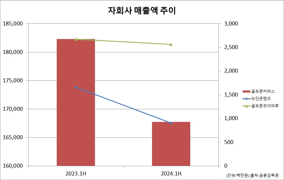반기보고서에 따르면 골프존커머스는 23년 매출액 기준 국내 오프라인 골프용품 시장의 약 34%를 차지하는 1위이다. 골프존뉴딘홀딩스는 해당 시장의 경쟁이 격화되고 있는 것은 맞으나 기존의 점유율과 규모의 경제를 바탕으로 한 가격 경쟁력이 오히려 1위 자리를 더욱 공고히 하는데 기여할 것으로 기대한다고 밝혔다. 골프존커머스의 상반기 매출액은 1,677억 원으로 전년 동기의 1,823억 원보다 146억 원 정도 감소하였다.