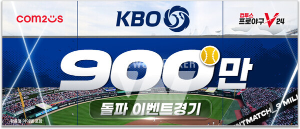 컴투스(대표 남재관)가 리얼 야구 게임 ‘컴투스프로야구V24’(이하 컴프야V24)에 KBO리그 900만 관중 돌파 기념 이벤트를 실시한다. 이번 이벤트는 KBO리그 역사상 최초로 기록된 900만 관중 돌파를 축하하고, 전국의 야구 게임 팬들과 함께 1,000만 관중 달성을 기원하고자 준비했다.