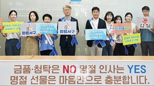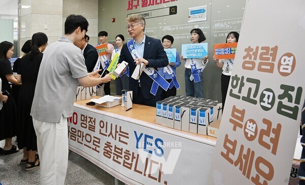 광주시 서구(구청장 김이강)는 12일 오전 서구청 1층 로비에서 청렴한 명절 분위기 확산을 위한 캠페인을 전개하고, 직원들에게 ‘부패방지‘의 의미를 담아 소금을 선물했다.