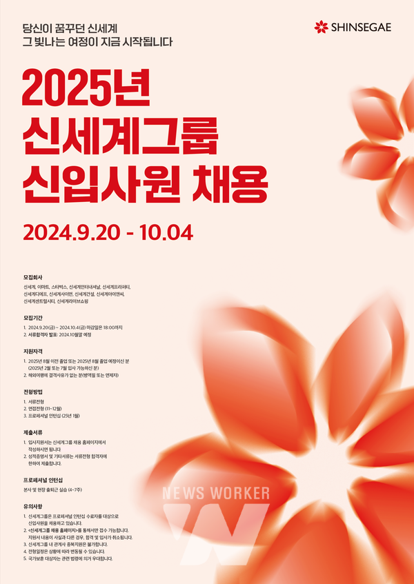 신세계그룹이 20일(금)부터 2025년 신입사원 공개 채용을 진행한다.