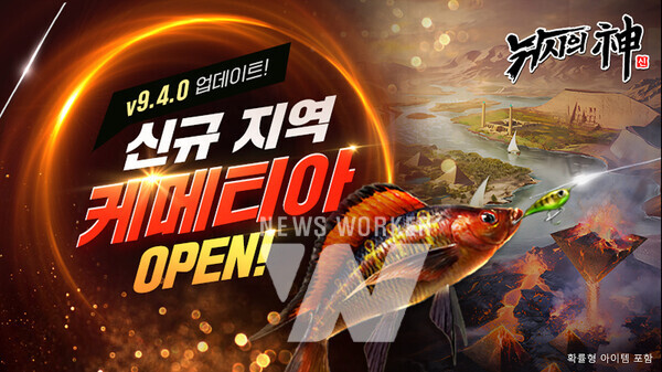 ‘낚시의 신’ 14번째 지역인 신규 맵 ‘케메티아’는 이집트를 형상화한 독특한 구성을 자랑하며, 개성 넘치는 스토리를 담은 세 지역으로 나뉘어져 있다. 1지역은 메뚜기 떼의 습격이나 우박 등 이집트에서 전해 내려오는 각종 재앙을 모티브로 한 신의 분노, 2지역은 인간에게 배신당해 분노한 신의 마음을 달래기 위한 관문을 그리고 있다. 마지막 3지역에서는 신의 분노가 해소되어 전성기 모습을 되찾은 이집트의 모습을 만나볼 수 있다. 각 지역의 콘셉트에 맞는 42종의 신규 어종도 추가됐다. 몸에 우박이 박혀있거나 메뚜기 등을 그려낸 ‘유세이드 헤체트’, ‘알자라 나일퍼치’ 등이 등장하며, 이집트 고대 신들인 아누비스, 아무트, 네크베크 여신 등을 형상화한 ‘자칼 타이거피쉬’, ‘팀사하 메기’, ‘아인느 디스커스’ 등도 만나볼 수 있다.