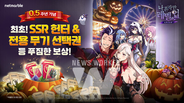 넷마블(대표 권영식, 김병규)은 액션 게임 "나 혼자만 레벨업:어라이즈"(개발사 넷마블네오)의 정식출시 0.5주년을 맞아 모든 이용자에게 ‘SSR 헌터 선택권’, ‘SSR 헌터 전용 무기 선택권’ 등을 제공하는 풍성한 이벤트를 진행한다고 7일 밝혔다.