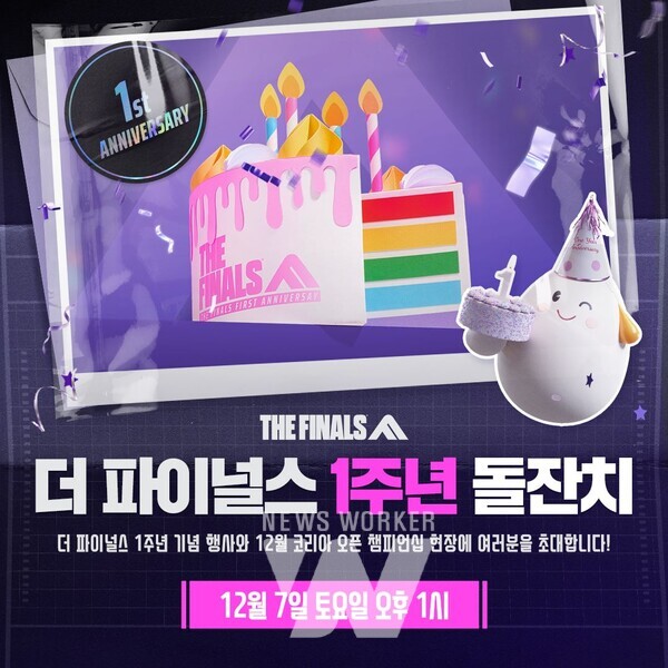㈜넥슨(공동 대표 강대현∙김정욱)은 12일 자회사 엠바크 스튜디오(대표 패트릭 쇠더룬드)에서 개발한 팀 기반 FPS 게임 ‘더 파이널스(THE FINALS®)’의 1주년 기념 돌잔치를 12월 7일 개최한다고 예고했다.