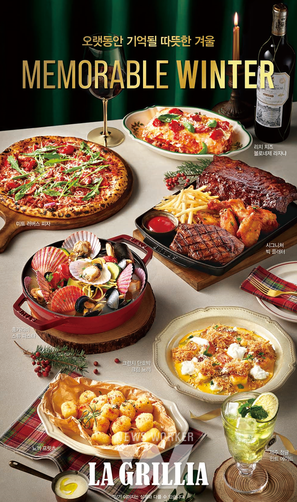 SPC 그룹이 운영하는 이탈리안 캐주얼 레스토랑 라그릴리아가 연말을 맞아 신메뉴 8종을 출시했다. 이번에 선보이는 시즌 메뉴는 ‘오랫동안 기억될 따뜻한 겨울(MEMORABLE WINTER)’을 주제로 파스타, 그릴 플래터, 피자 등을 라그릴리아만의 레시피로 선보였다.