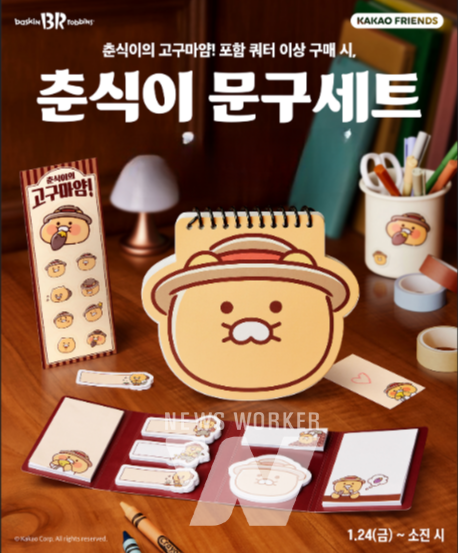 SPC 배스킨라빈스가 ‘춘식이 문구세트’ 사전 예약 행사를 진행한다.