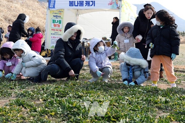 ‘흙 사람 그리고 불’이란 주제로 제53회 강진청자축제가 강진군 대구면 청자촌 일원에서 열리고 있는 가운데 지난 24일 다소 쌀쌀한 날씨에도 불구하고 축제장을 찾은 어린이들이 고사리 손으로 봄나물을 캐며 즐거운 한 때를 보내고 있다.