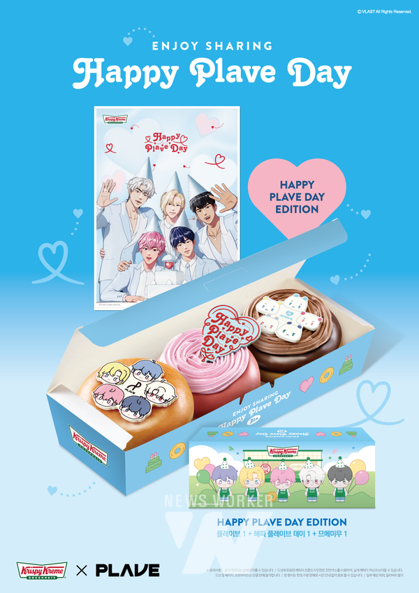 해피 플레이브 데이 에디션은 플레이브 멤버들이 선호를 반영해 초콜릿, 스트로베리, 오리지널 글레이즈드 맛으로 구성했다. ‘플레이브’는 오리지널 글레이즈드에 플레이브 SD 캐릭터가 그려진 초콜릿 사인판을 올린 제품이다. ‘해피 플레이브 데이’는 딸기 스프레드를 입히고 딸기우유크림을 토핑한 후 데뷔 2주년 기념 팝업스토어 로고 사인판으로 장식했다. ‘므메미무’는 헤이즐넛 초코 스프레드와 초코 우유크림이 가미돼 진한 초코 풍미를 느낄 수 있다. 므메미무는 플레이브 멤버들을 동물로 형상화한 귀여운 캐릭터로, 캐릭터 공개 후 첫번째 협업 제품이다.