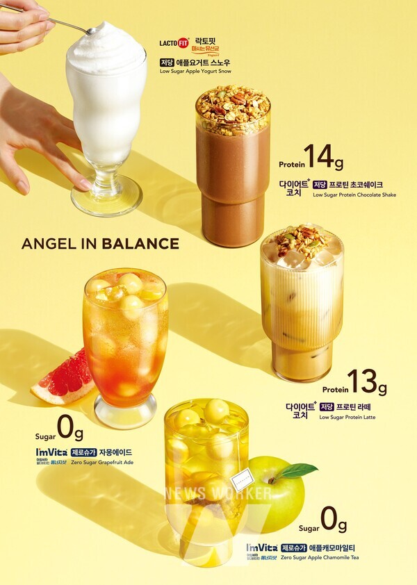 락토핏 마시는 유산균을 활용한 ‘저당 애플요거트 스노우’는 소화에 도움을 줄 수 있는 유산균 기능성을 살린 메뉴이며, 다이어트코치 원료로 만든 ‘저당 프로틴 초코쉐이크’와 ‘저당 프로틴라떼(HOT/ICE)’는 단백질 보충을 원하는 고객에게 적합하다. 이와 함께 건강한 디저트를 찾는 소비자 니즈를 반영한 ‘저당 마스카포네 생크림 케이크’와 ‘저당 벨지안 초콜릿 케이크’도 함께 출시된다. 엔제리너스는 이번 신제품을 통해 MZ세대를 비롯한 건강 중심 소비자층의 입맛을 사로잡고 브랜드의 건강 지향 이미지를 강화할 계획이다.