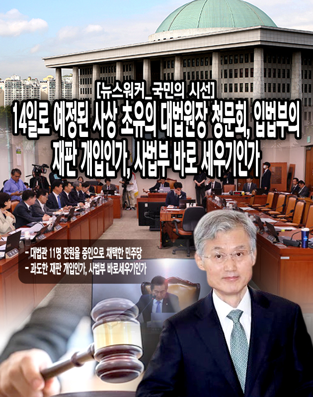 국회는 오는 14일 오전 10시, 조희대 대법원장을 상대로 ‘사법부 대선 개입 의혹 진상규명 청문회’를 개최할 예정이다. 지난 1일, 이재명 더불어민주당 후보의 공직선거법 위반 혐의 사건에서 무죄를 선고한 2심 판결을 파기하고 유죄 취지로 고등법원으로 파기환송한 사건에 따른 민주당의 대응이었다.