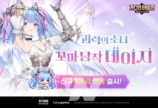 카카오게임즈는 16일 미국 개발사 콩 스튜디오가 개발한 모바일 RPG ‘가디언 테일즈’에 신규 영웅 ‘꼬마 남작 데이지’를 추가하고 ‘테티스 영웅전’ 시즌 3 업데이트를 진행했다고 밝혔다. ‘데이지’는 아델라 요새 도시를 다스리는 남작 가문의 소녀로, 강력한 근접 피해와 아군 전원의 방어력을 올리는 리더 기술을 보유했다.