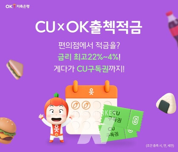 OK저축은행이 BGF리테일과 협업해 ‘CUxOK출첵적금’이라는 비대면 초단기 적금 상품을 출시했다. 이 상품은 31일 동안 매일 5000원 또는 1만원 중 납입 금액을 선택해 납부하는 방식으로, 출석체크에 따라 우대금리가 최대 연 22%(세전)까지 제공되는 점이 특징이다.