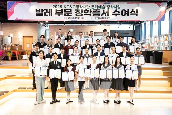 KT&G장학재단이 지난 5월 17일 ‘문화예술 장학사업’의 발레 부문 장학생과 ‘글로벌 아티스트’ 수상자들을 대상으로 장학증서 수여식을 개최했다. 이번 행사는 재단의 문화예술 인재 양성을 위한 노력의 일환으로 마련됐다.