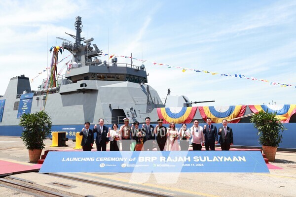 HD현대중공업이 필리핀 해군으로부터 수주한 총 6척의 원해경비함 가운데 첫 번째 함정인 ‘라자 술라이만함(RAJAH SULAYMAN)’을 성공적으로 진수했다. 이번 진수는 K-해양방산의 위상을 높이는 성과로, 올해 3월 진수된 필리핀 초계함 2번함 ‘디에고 실랑함’에 이어 두 번째 수출 함정 진수 사례다.