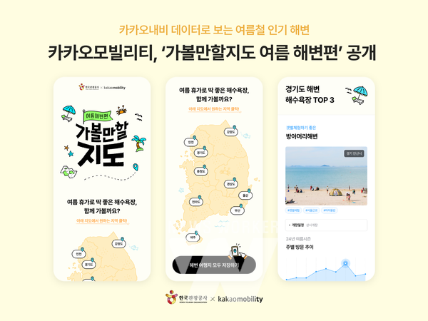 카카오모빌리티가 여름 휴가철을 맞아 한국관광공사와 협력해 카카오내비의 이동 데이터를 기반으로 한 ‘가볼만할지도 여름해변편’을 25일 공개했다. ‘가볼만할지도’는 이용자의 이동 데이터를 분석해 목적지 정보를 일러스트 지도로 제공하는 서비스로, 카카오모빌리티는 이 시리즈를 본격적으로 정례화해 더욱 풍부한 맞춤형 콘텐츠를 제공할 계획이다.