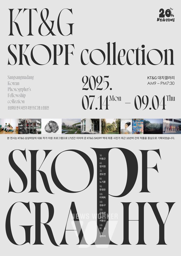 ‘KT&G SKOPF’는 2008년부터 신진 사진작가 발굴과 육성을 목표로 운영돼 온 예술가 지원 프로그램이다. 매년 ‘올해의 사진가’ 3인을 선발해 지원금, 멘토링, 전시 기회를 제공하며, 이 중 1인을 연말에 ‘최종 사진가’로 선정해 작품 제작비와 홍보비용을 추가로 지원한다.