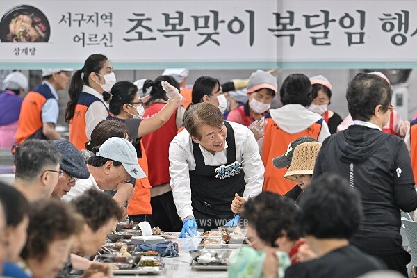 광주시 서구(구청장 김이강)는 16일 서구 서빛마루시니어센터 시니어레스토랑에서 센터 이용어르신들에게 초복 맞이 복달임 무료특식 봉사를 실시했다.
