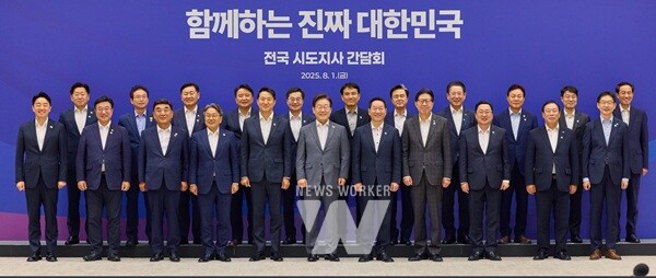 이재명 정부 출범 이후 전국 시도지사 첫 간담회로 ▲지방분권 및 국가균형발전 ▲자연재난 대응과 민생회복 소비쿠폰의 원활한 지급‧사용 등에 대한 자유토론으로 진행됐다.