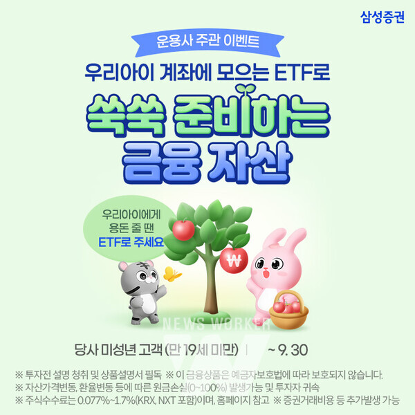 삼성증권(대표 박종문)은 만 19세 미만 미성년 고객을 대상으로 ‘자녀 계좌 ETF 순매수 이벤트’를 9월 말까지 진행한다고 밝혔다.