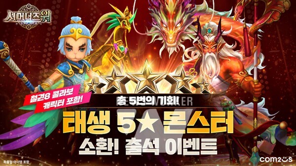 컴투스(대표 남재관)의 글로벌 히트작 ‘서머너즈 워’가 원하는 태생 5성 몬스터를 획득할 수 있는 특별 이벤트를 진행한다. 이번 이벤트는 게임에 접속만 해도 강력한 능력치를 보유한 태생 5성 몬스터를 얻을 수 있는 기회로, 9월 30일까지 참여할 수 있다.