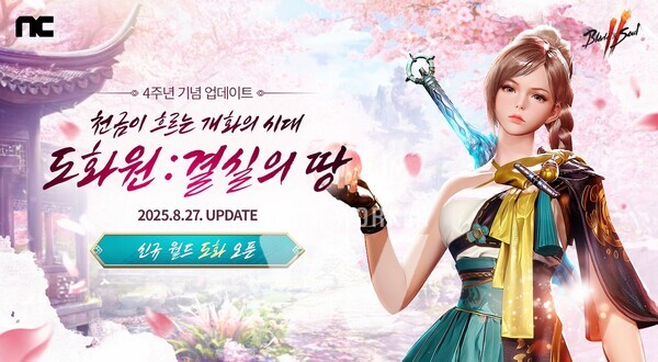 엔씨소프트(공동대표 김택진, 박병무)는 27일 멀티플랫폼 MMORPG ‘블레이드 & 소울 2(블소2)’에 대규모 업데이트 ‘도화원, 결실의 땅’을 진행했다. 이번 업데이트는 신규 독립 월드 개방과 상위 던전 추가, 한정 장비 및 성장 지원 콘텐츠를 포함하고 있다.