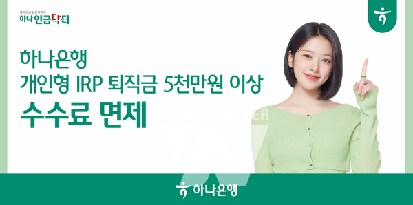 하나은행(은행장 이호성)이 비대면으로 개인형IRP를 가입하고 퇴직금을 5천만 원 이상 입금한 고객에게 운용 및 자산관리 수수료를 전액 면제한다. 이번 개편은 장기 투자 성격을 가진 퇴직연금 제도의 특성을 고려해 고객의 금융비용 부담을 줄이고 안정적인 노후 생활을 지원하기 위해 마련됐으며, 오는 10월부터 시행된다.