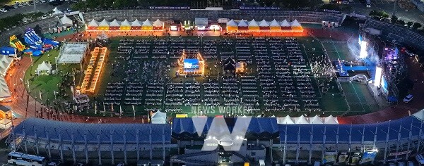 드론으로 내려다 본 제3회 강진하맥축제장 전경.