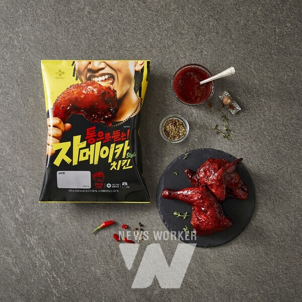 CJ제일제당은 닭 반마리를 통으로 즐길 수 있는 ‘CJ 자메이카 Style 치킨’을 출시했다고 16일 밝혔다. 이번 신제품은 통다리와 통날개가 붙은 몸통 형태로, 외식과 배달 시장에서 선호도가 높은 뼈 치킨을 합리적인 가격으로 집에서도 간편하게 즐길 수 있도록 기획됐다.