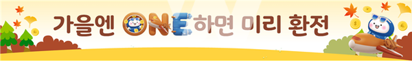 IBK기업은행(은행장 김성태)은 추석 황금연휴를 앞두고 해외여행을 준비하는 고객을 대상으로 ‘가을엔 ONE하면 미리 환전’ 이벤트를 진행한다고 18일 밝혔다.