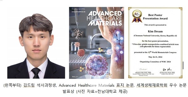 이번 연구는 김드림 석사과정생, 이신율 석사과정생, 김우찬 박사가 각각 주저자로 참여했으며, 출판된 논문은 ‘Advanced Healthcare Materials(피인용지수 9.6)’와 ‘Nano Letters(피인용지수 9.1)’ 최신 호에 표지 논문으로 선정됨과 동시에 세계생체재료학회 및 한국생체재료학회에서 우수 논문 발표상을 수상하여 연구의 우수성을 입증했다.