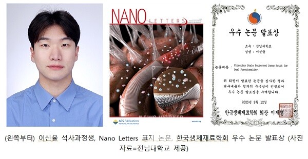 전남대학교 김장호 교수팀의 김드림, 이신율 석사과정생이 저명 국제학술지 ‘Advanced Healthcare Materials’와 ‘Nano Letters’ 저널에서 각각 표지 논문으로 선정되는 쾌거를 이뤘다고 22일 밝혔다.