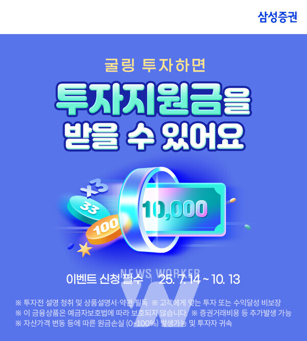 삼성증권은 ETF 기반 포트폴리오 자문 서비스인 ‘로보굴링’과 ‘연금굴링’ 투자 고객을 대상으로 10월 13일까지 이벤트를 진행한다.
