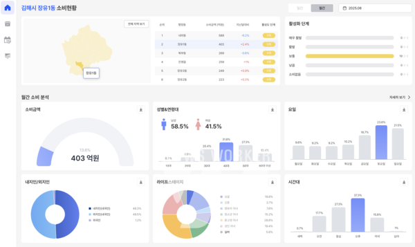 이번 솔루션은 신한카드가 보유한 카드 결제 데이터와 AI 분석 기술을 기반으로, 지자체별 소비 패턴과 상권 변화, 지역경제 동향을 직관적으로 파악할 수 있는 분석 도구를 제공한다. ▲AI 기반 지역별 소비 현황 분석 ▲상권별 매출 변화 추이 ▲계절별 소비 변동성 분석 ▲인근 지역과의 소비 비교 분석 등이 주요 기능으로 탑재됐다.