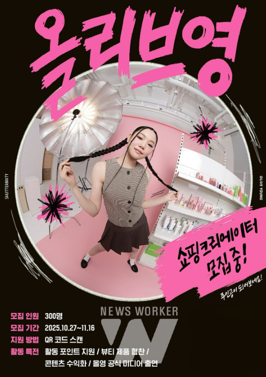 모집은 오는 11월 16일까지 진행되며, 총 300명을 선발한다. 올리브영 회원이라면 누구나 앱 내 이벤트 페이지 또는 매장 내 QR코드 스캔을 통해 지원할 수 있다. 최종 선발된 인원은 12월 12일 CJ인재원에서 열리는 ‘셔터브리티 6기 오리엔테이션’을 통해 본격적인 활동을 시작할 예정이다.