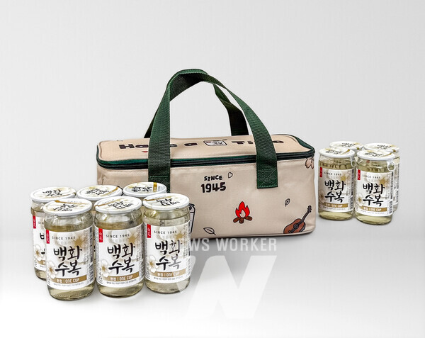 ‘백화수복 원컵 캠핑 패키지’는 180ml 용량의 ‘백화수복 원컵’ 10개와 이를 한 번에 담을 수 있는 단열 캠핑백으로 구성됐다. 제품은 코스트코 등 창고형 할인매장과 일부 대형마트에서 한정 판매될 예정이다.
