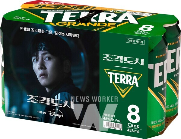 하이트진로(대표 김인규)는 디즈니+ 오리지널 시리즈 ‘조각도시’와 협업한 ‘테라’ 한정판 패키지를 6일 출시했다고 밝혔다. 이번 협업은 ‘테라’ 모델 지창욱이 주연으로 출연한 작품과의 시너지를 극대화하기 위해 기획됐다.